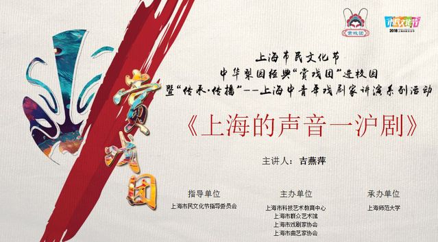 本次講座將通過圖片、文字、講解的形式讓觀眾對滬劇的發展史、藝術特點、代表劇目有一定的了解;同時也將通過現場互動的形式從滬語、滬劇、傳統戲曲的手眼身法步等各方面讓觀眾現場感受滬劇的獨特魅力,從而培養對滬劇的興趣和愛好。