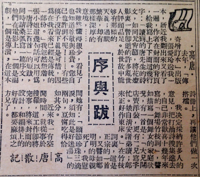 唐大郎(高唐)《高唐散記·序與跋》版面,刊1947年12月2日《鐵報》