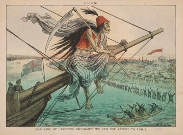 美國人繪制的霍亂插圖,隨船而來的死神形象表現(xiàn)出普通人的恐懼心理。